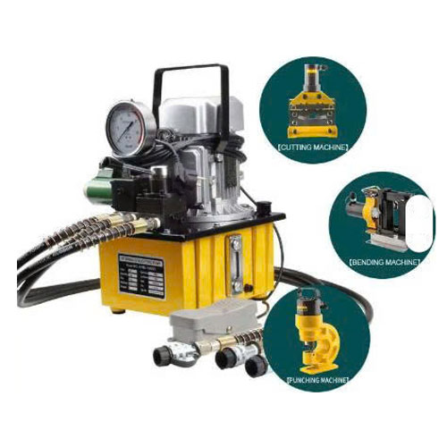 Bơm điện thủy lực 3 đường dầu ZCB-700AB-3 là thiết bị bơm dầu thủy lực áp cao 70mpa chạy điện dân dụng 220v có thiết kế gọn nhẹ với 3 vòi dầu hồi riêng biệt giúp cho người thợ dễ dàng vận hành 3 dụng cụ thủy lực khác nhau mà không cần phải thay tháo lắp sau mỗi lần sử dụng mang lại sự tiện dụng đến cho khách hàng đặc biệt trong gia công thanh cái đồng cắt-đột và uốn thanh đồng cái hiệu quả.