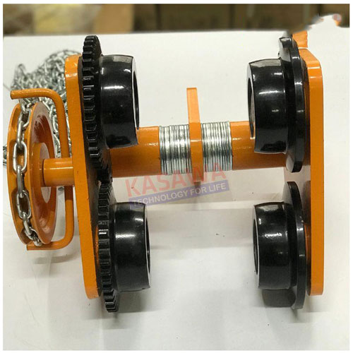 Con chạy kéo palang xích 5 tấn VG050 là cụm treo pa lang xích có bánh răng(chain hoist assembly) trolley dạng xích kéo tay có thiết kế nhỏ gọn với 4 bánh thép để di chuyển palang xích điện hay đầu trục cơ cấu treo tải trọng 5 tấn và dây xích dài 3 mét để kéo treo rùa 5 tấn chạy trên dầm trục chữa H I được linh hoạt dễ dàng nhất.