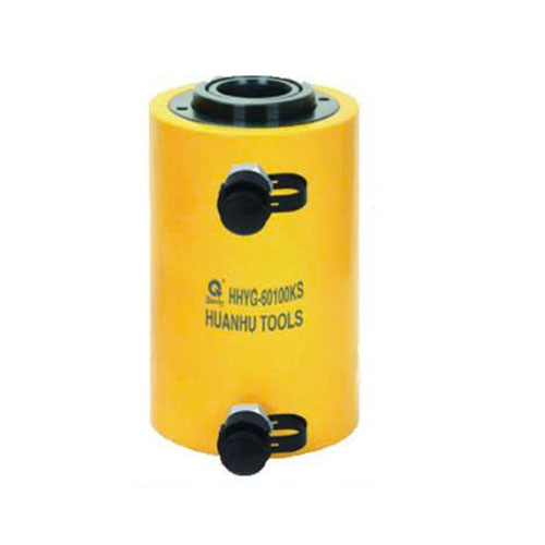Kích thủy lực rỗng tâm 60 tấn HHYG-60100KS là dòng kích nâng hạ hoạt động bằng bơm nguồn thủy lực rời dùng tay hay chạy điện còn được gọi với tên con đội thủy lực thông tâm có thiết kế nhỏ gọn đặc biệt có lỗ thông xuyên suốt phần thân kích giúp cho kích dễ dàng nâng hạ tải trọng nặng lên đến 60 tấn hay căng kéo cáp bulong trong những điều kiện đặc biệt.