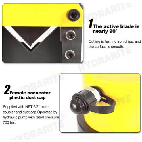 Máy cắt thép V thủy lực HHJG-60 là dòng đầu cắt thanh kim loại sắt thép V 60 chuyên dụng có độ dày 6mm với thiết kế nhỏ gọn hoạt động với bơm nguồn thủy lực áp cao 700bar dùng tay hay dùng điện giúp cho đầu cắt sắt V có gia lực lên đến 35 tấn dễ dàng cắt sắt V60 dày 6mm một cách nhanh chóng chính xác, thời gian mỗi lần cắt chỉ từ 3 đến 4 giây.